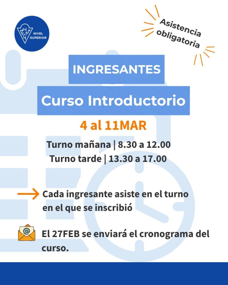 Les informamos de las nuevas fechas del curso introductorio. Recuerden que es obligatoria la asistencia.